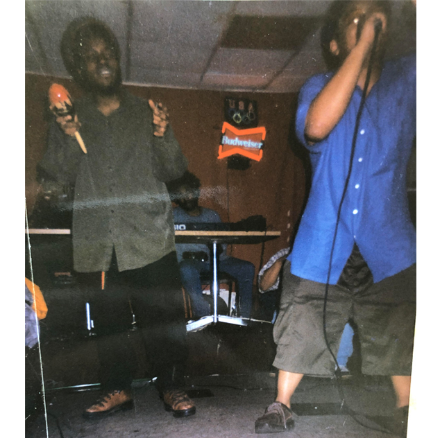 Story: Jah Gift on left. Aychell in background middle. Filli on foreground right, performing at Nyala Restaurant